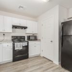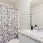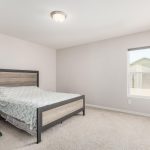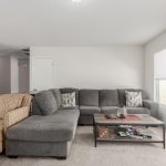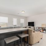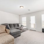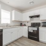 Inside you’ll find a Great Room floor plan that opens to a gorgeous kitchen with white shaker cabinets, a good-sized pantry, and black appliances.